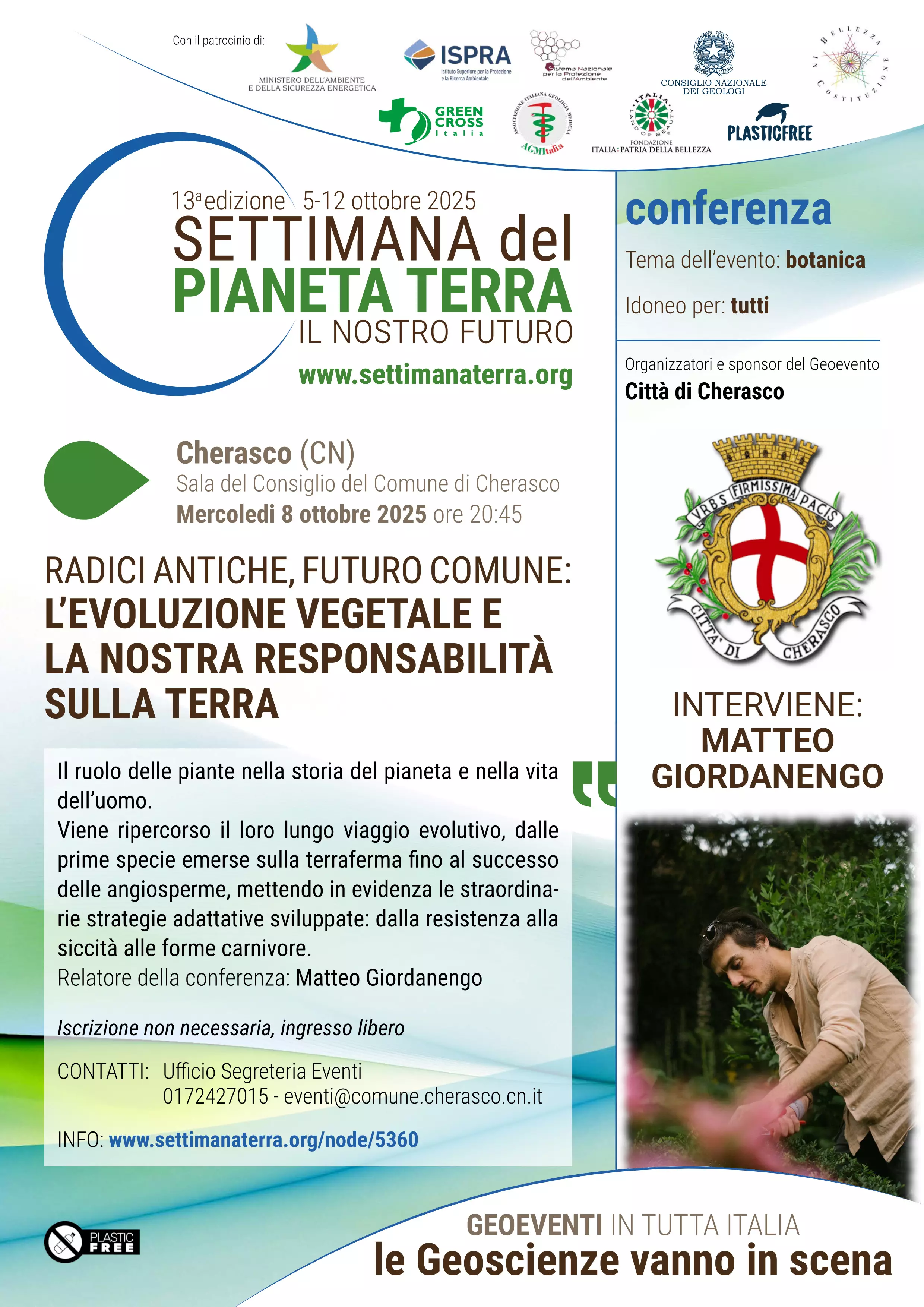 Il tema dell’incontro sarà “Radici antiche, futuro comune: l’evoluzione vegetale e la nostra responsabilità sulla terra”. In quest’occasione si parlerà del ruolo delle piante nella storia del pianeta e nella vita dell’uomo e si ripercorrerà il loro lungo viaggio evolutivo, dalle prime specie emerse sulla terraferma fino al successo delle angiosperme. Verranno, inoltre, poste in evidenza le straordinarie strategie adattative sviluppate dal mondo vegetale: dalla resistenza alla siccità alle forme carnivore.